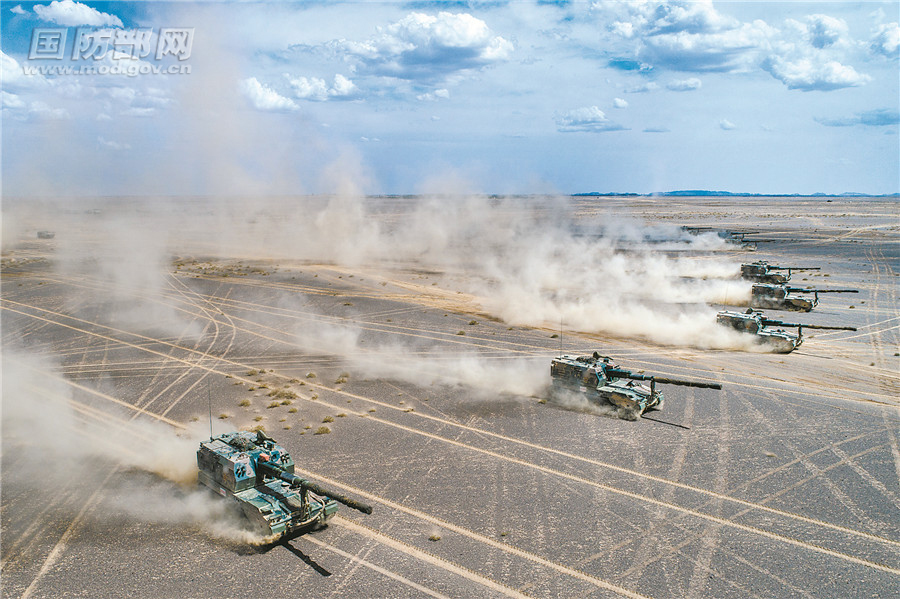 圖為自行火炮進(jìn)行戰(zhàn)場機(jī)動。周寅 攝