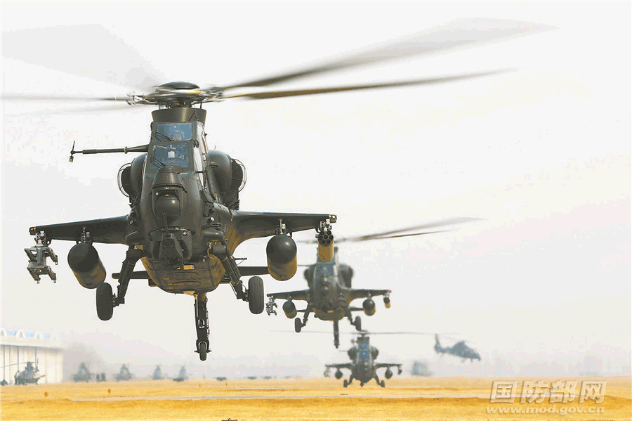 2月24日,第80集團(tuán)軍某陸航旅20余架戰(zhàn)機(jī)依次升空,進(jìn)行突防偵察、戰(zhàn)術(shù)起降、伴隨護(hù)航等多個(gè)實(shí)戰(zhàn)化課目訓(xùn)練。李騏光 攝
