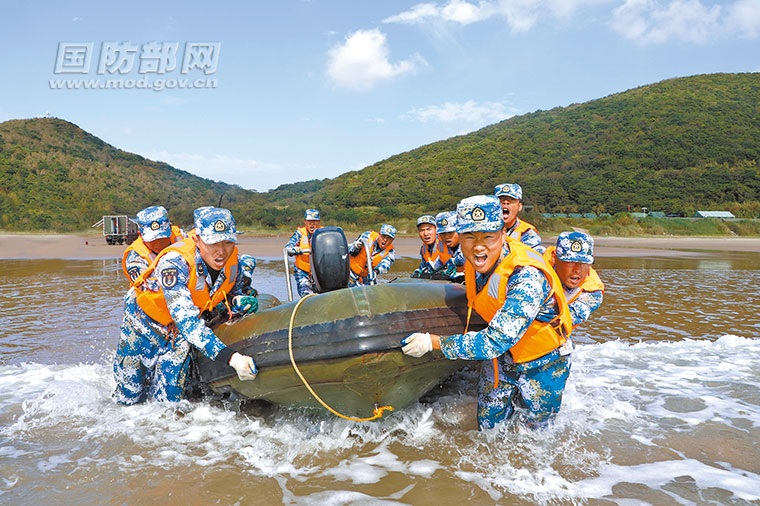 11月上旬,東部戰(zhàn)區(qū)海軍某油料技術保障大隊組織開展岸灘無碼頭油料應急保障演練。岸灘輸油軟管布設完畢后,戰(zhàn)士們克服暗涌險流,齊心協(xié)力將載有牽引軟管的沖鋒舟推向冰冷的海水里,并拖曳至預定海域,迅速完成與作戰(zhàn)艦艇對接,建立岸海銜接油料輸轉通道,第一時間為戰(zhàn)艦輸送“血液”。席云旭、王宗洋攝影報道