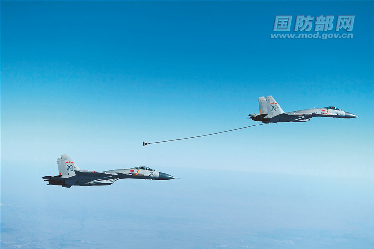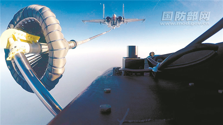 ?“5米、3米、2米……”“對(duì)接!”兩架殲-15艦載戰(zhàn)斗機(jī)成功對(duì)接,開始進(jìn)行空中加油。數(shù)分鐘后,加油結(jié)束,戰(zhàn)機(jī)迅速調(diào)整航線,展開空中攔截、近距空戰(zhàn)等多個(gè)課目訓(xùn)練。