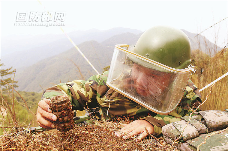 搜排手小心翼翼地將一枚地雷成功排除。