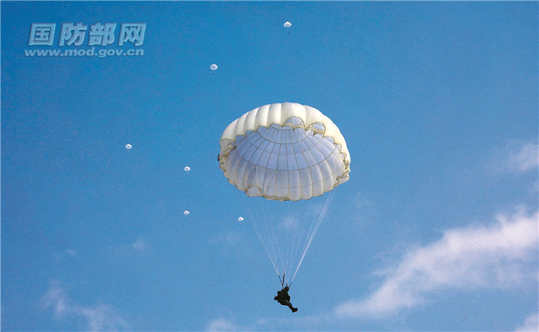 “跳!跳!跳!”當(dāng)機(jī)艙內(nèi)的跳傘信號(hào)響起,教員指揮新兵們依次縱身躍出艙門。頓時(shí),空中綻放朵朵潔白的傘花。大約2分鐘后,新兵們陸續(xù)成功著陸。