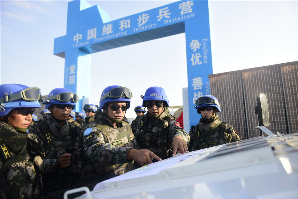 ??????? 中國赴南蘇丹維和步兵營研究巡邏線路。