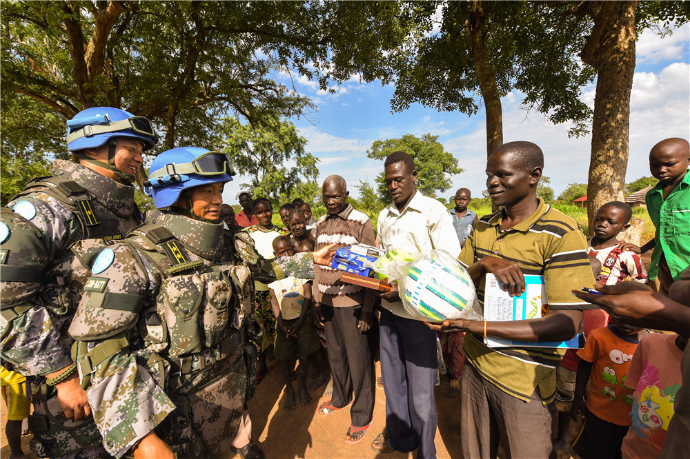 ??????? 中國赴南蘇丹維和步兵營向當(dāng)?shù)卮迕褓浰蜕钣闷贰?/span>