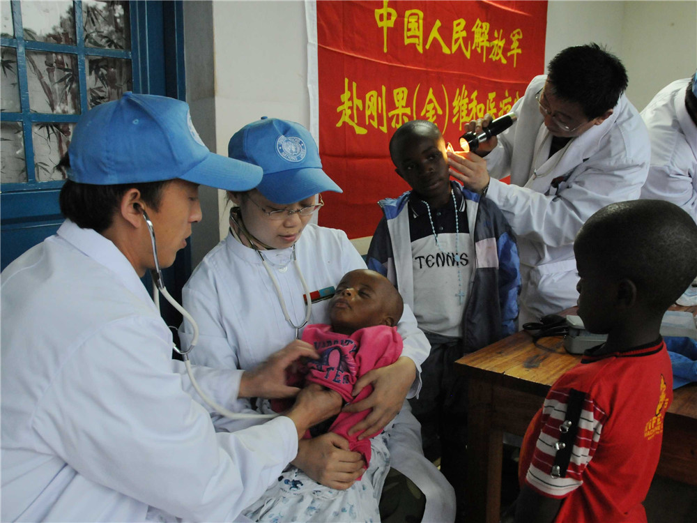 中國赴剛果(金)維和醫(yī)療分隊(duì)為當(dāng)?shù)豐OS兒童村的孩子進(jìn)行體檢治療。