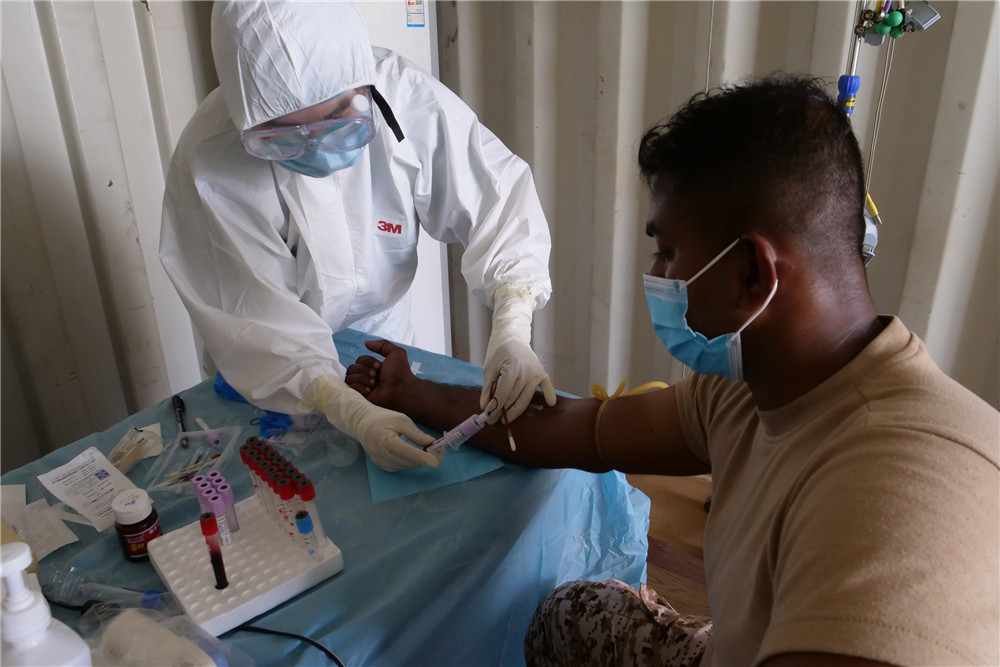 中國赴馬里維和醫(yī)療分隊(duì),護(hù)士為瘧疾患者抽血化驗(yàn)。