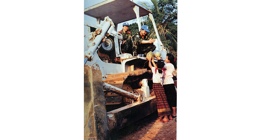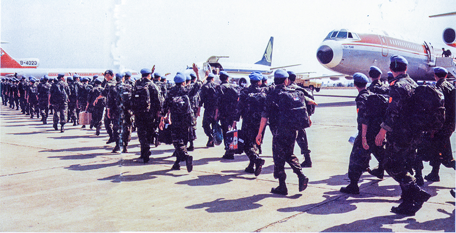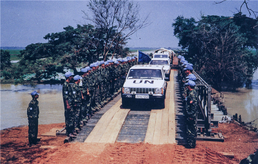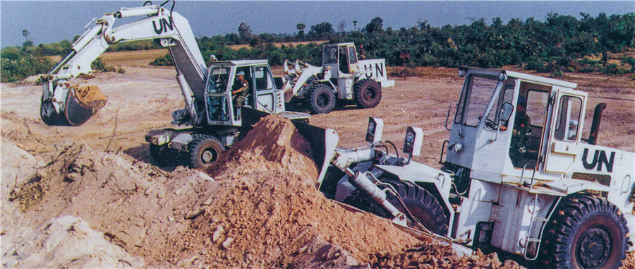 1992年4月至1993年9月,中國共向聯(lián)合國柬埔寨臨時權力機構派出2批800名維和官兵,他們在極其艱苦的條件下遂行工程支援任務。